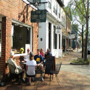 Patio seating is a favorite among guests. The charm of dining outside in a lovely neighborhood creates a pleasant atmosphere for conversation.